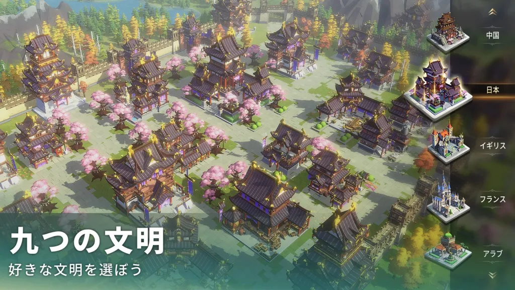 スマホゲーム「文明と征服:EOC」では、9つの異なる文明から選んで、それぞれの文明が持ってるバフ効果をうまく活かしてゲームを進めることができるんだよ!各文明には特徴があって、それがプレイスタイルや戦略にめっちゃ影響するの。だから、どの文明を選ぶかってすっごく大事なんだよね。
